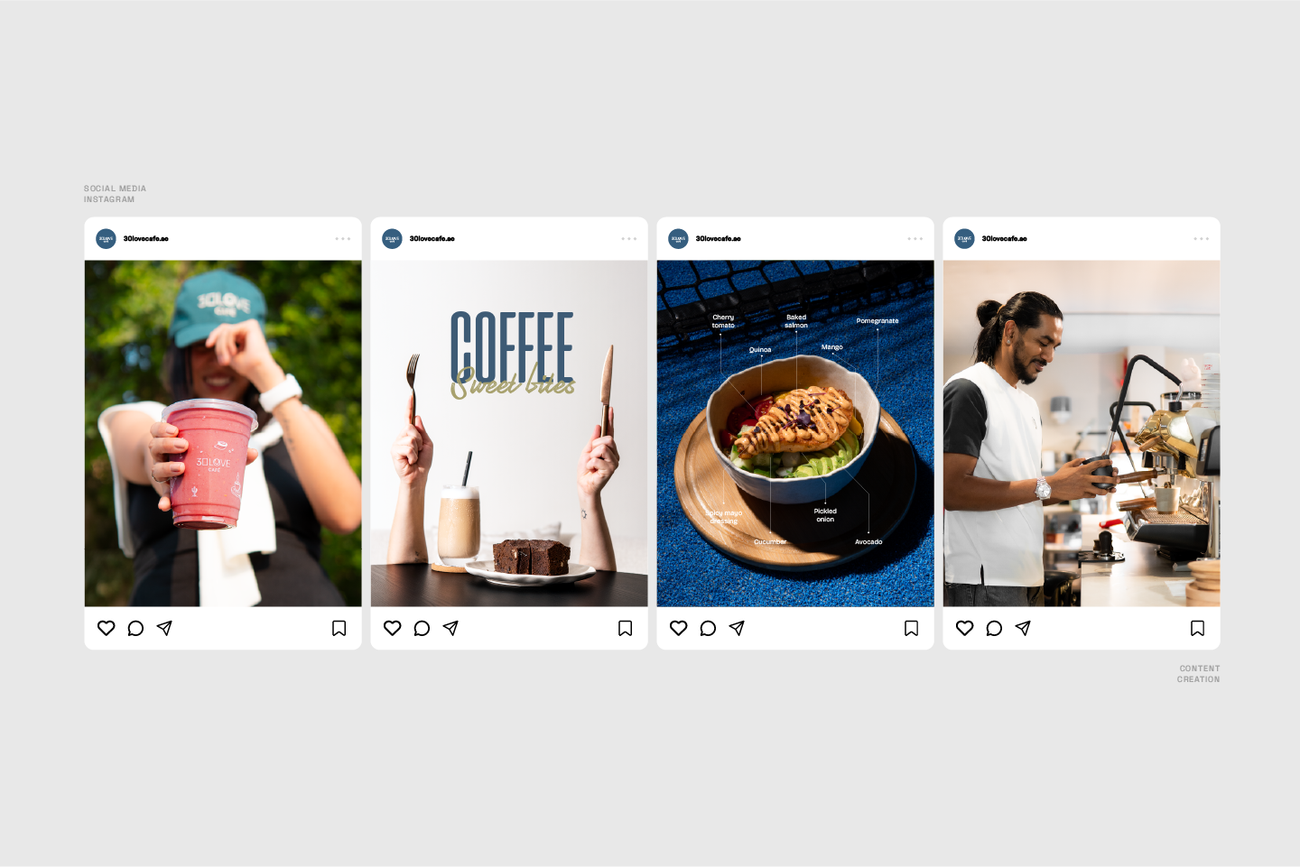 30 Love Café needed consistent and engaging social media content that reflected its identity as a modern café in Dubai. The challenge was maintaining visibility, quality visuals, and audience engagement through structured content management.